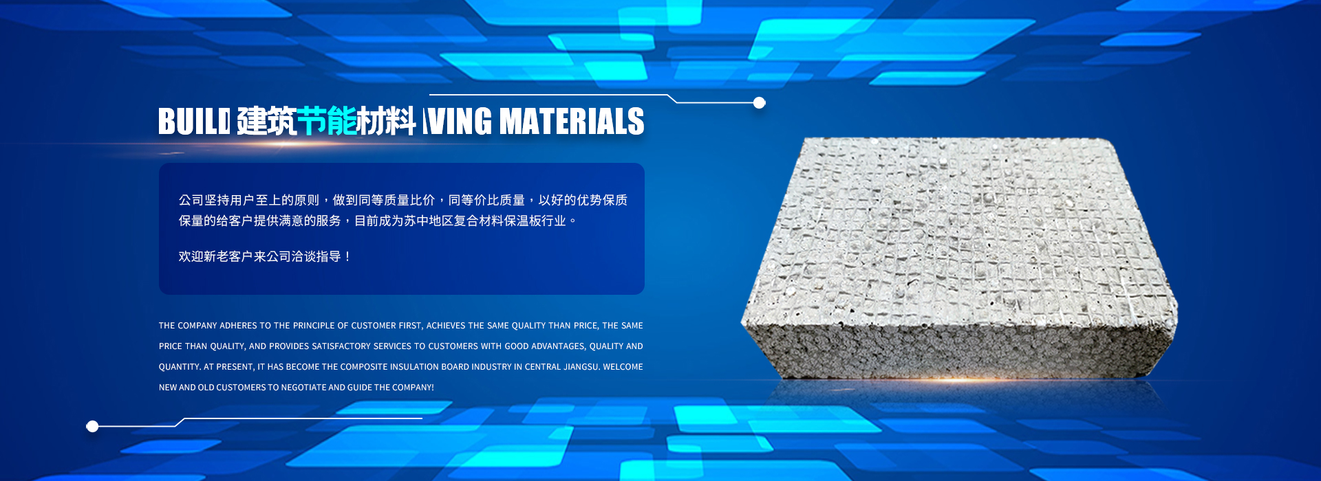 南通新蘇尚建筑節能材料有限公司專注于研發制造:復合材料保溫板,纖維增強復合材料保溫板,復合材料現澆模板,A等級外墻保溫板等,我們的產品注重外觀和內在質量,材質符合國家相關標準。公司堅持用戶至上的原則,做到同等質量比價,同等價比質量,以好的優勢保質保量的給客戶提供滿意的服務,目前成為蘇中地區復合材料保溫板行業。歡迎新老客戶來公司洽談指導!